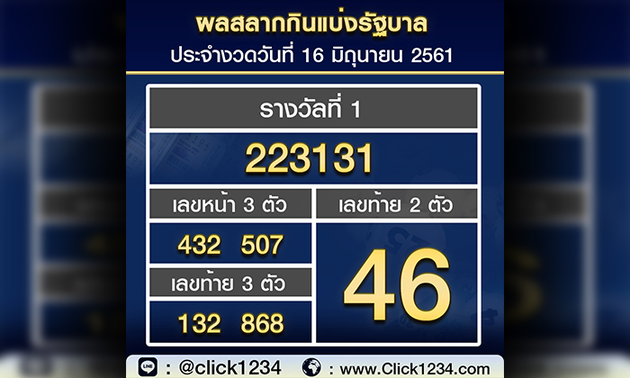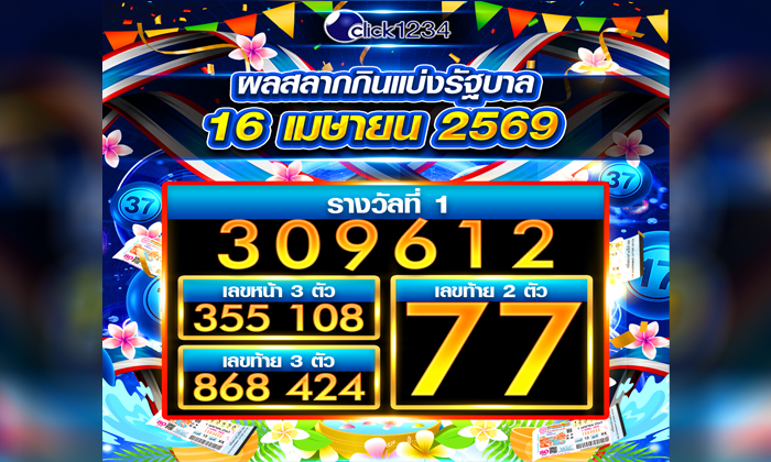 ผลสลากกินแบ่งรัฐบาลประจำงวดวันที่ 16/4/2569