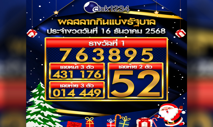 ผลสลากกินแบ่งรัฐบาลประจำงวดวันที่ 16/12/2568